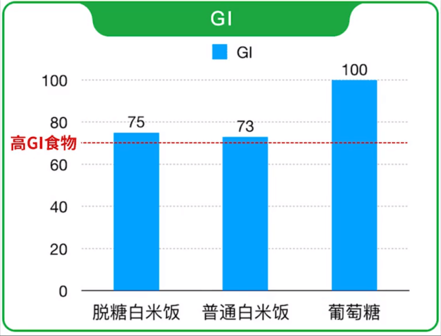 从图表1中我们能够清晰的看到被测血糖人员的数据,脱糖米饭(蓝线)和正常米饭(橙线)的升糖降糖曲线没有明显差别,另外在降糖的速度上,脱糖甚至还比未脱糖的降的慢。另外,在图二中的食物GI值(血糖生成指数)上,脱糖米饭还比正常米饭高出了2个点,这纯纯的将用户的智商踩在地上摩擦。大家还是关注一下普通电饭煲比较实际。
